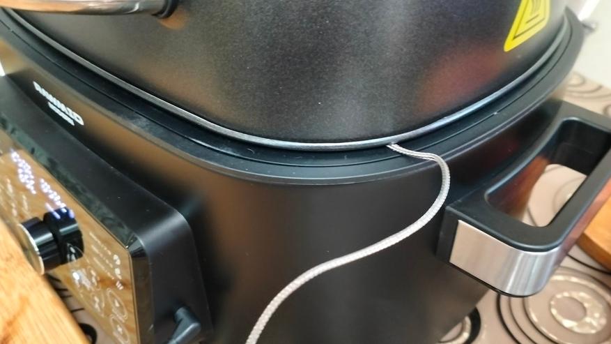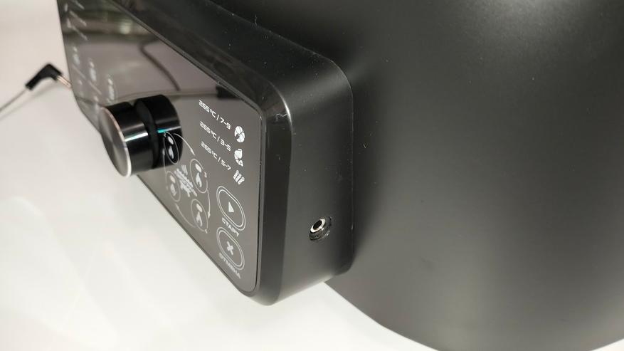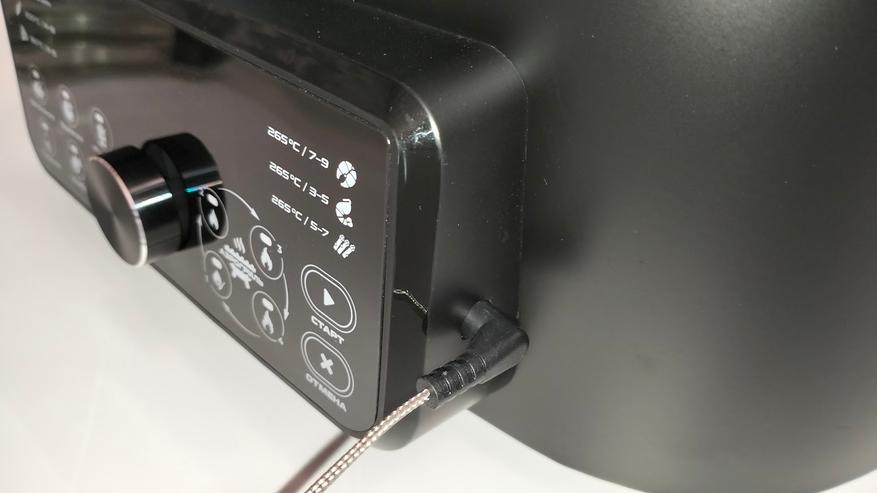 Для использования программы с термощупом, следует установить его сразу после включения аэрогриля. Для этого слева от панели управления есть гнездо.