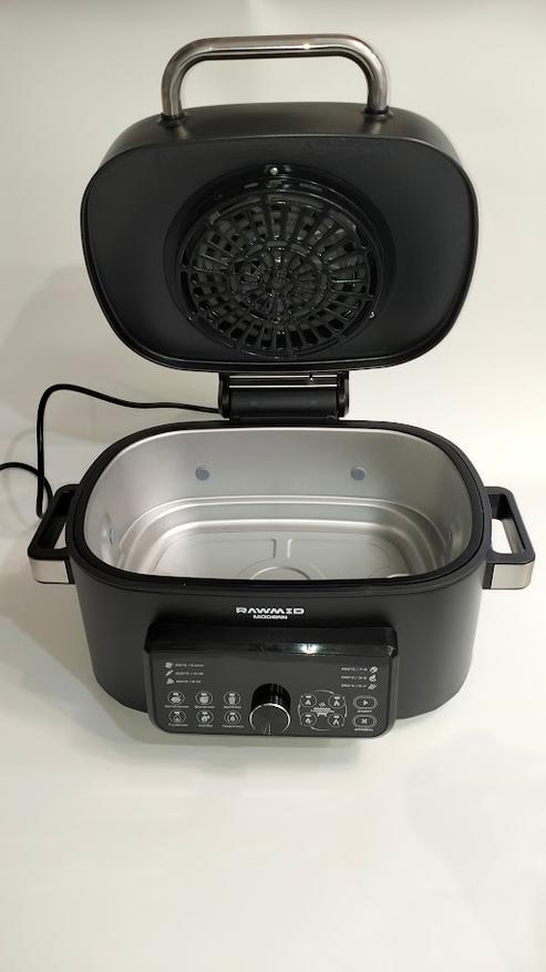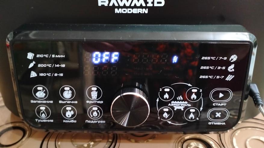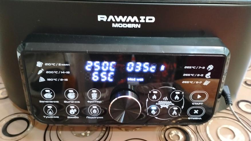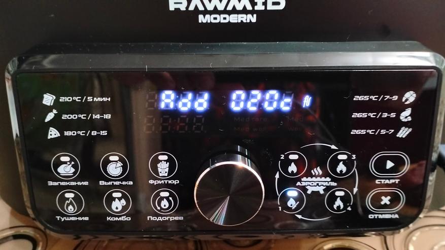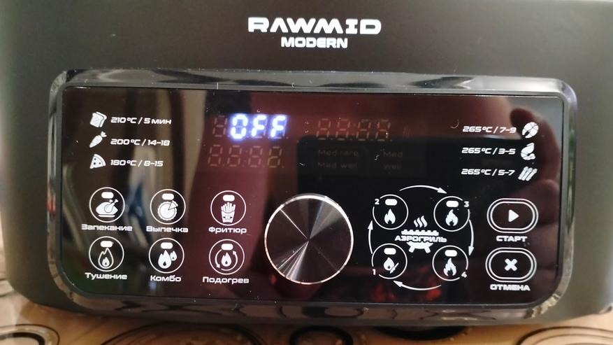 Аэрогриль RAWMID Modern RMA-04 сделает все, чтобы ваши продукты приготовились вкусно и правильно, а ваша кухня осталась чистой. Эта модель аэрогриля греется до 265 градусов, что редкость для аэрогрилей, в основном максимальная температура у аналогов достигает максимум 200 градусов. RAWMID Modern RMA-04 оснащен термощупом и имеет специальную программу, благодаря чему ваш стейк будет нужной вам степени прожарки. В комплекте есть решетка гриль, сетчатая корзина и чаша объемом 6 литров, все это закроет большинство ваших потребностей в процессе приготовления пищи.