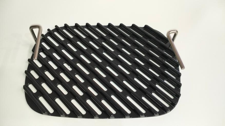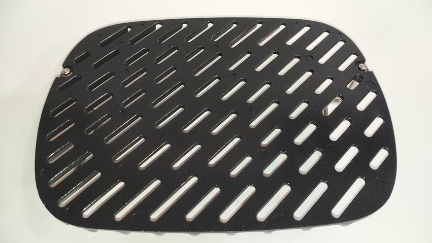 Решетка- гриль. Эта решётка‑гриль выполнена из алюминия, обладающего высокой теплопроводностью, и защищена надёжным керамическим антипригарным покрытием. Характерный рельеф поверхности — чередующиеся полоски и бороздки — придаёт изделию узнаваемый вид. Две эргономичные ручки обеспечивают удобный захват при установке и извлечении решётки.