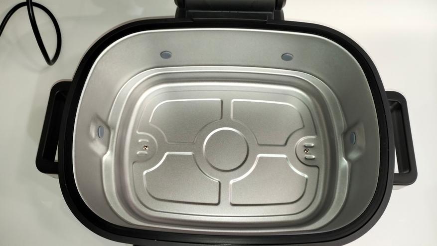 Обслуживание прибора не вызывает затруднений: антипригарное покрытие без труда очищается после использования. Отдельно стоит отметить, что рабочее пространство остаётся безупречно чистым, а кухня не наполняется дымом — даже при жарке мяса на высоких температурах.