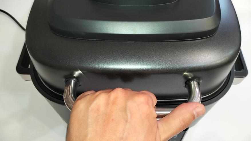 Для открытия\ закрытия крышки аэрогриля используется массивная ручка, которая не нагревается в процессе работы устройства.