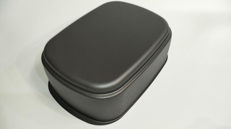 Аэрогриль выполнен из безвредных материалов, в отличии от большинства похожих устройств, его чаша не вынимается сбоку, в данном случае имеется крышка сверху, которая открывается. Покрытие корпуса матовое, благодаря этому его довольно легко протирать, не оставляя следов.
