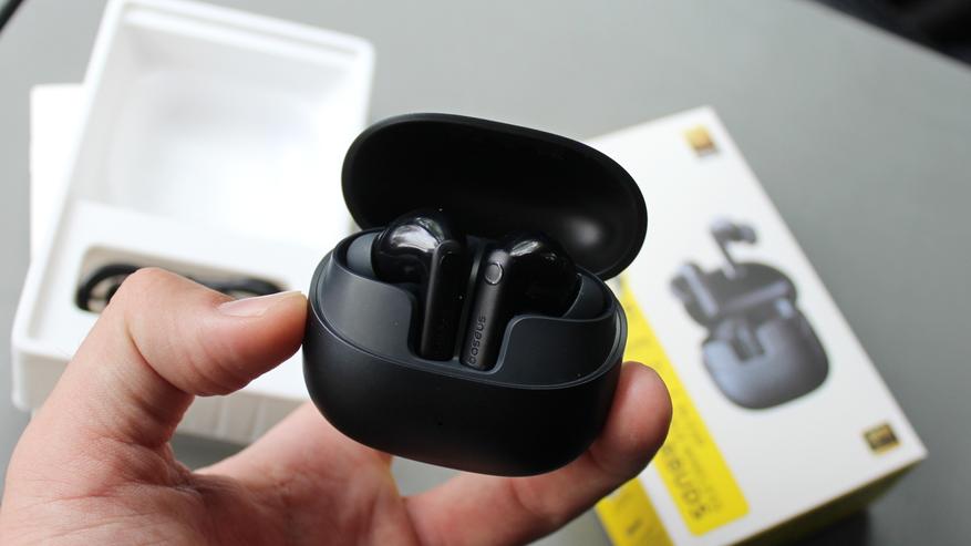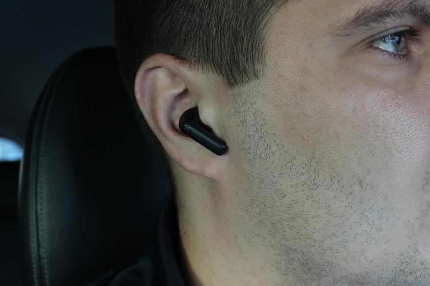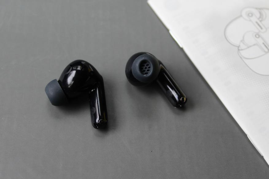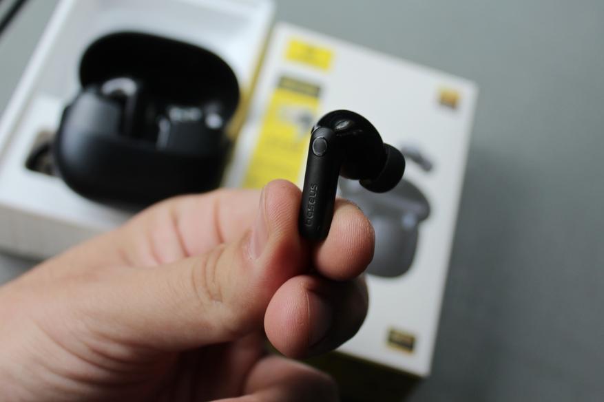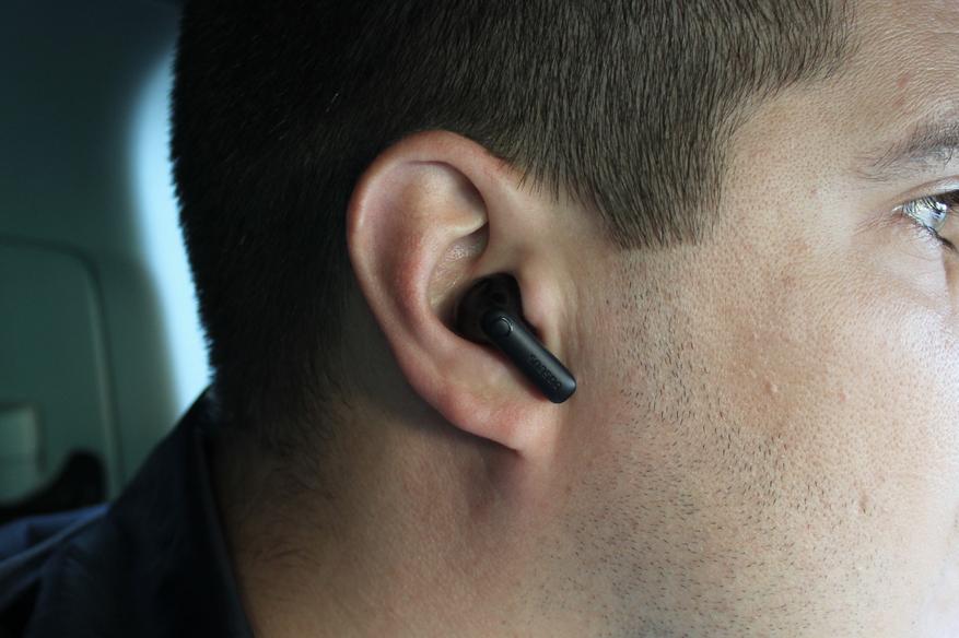 Сами наушники имеют классический для внутриканальных TWS-моделей дизайн с короткой ножкой. Их вес составляет всего около 5 грамм каждый, и это удобно при длительном ношении. Наушники сидят в ушах комфортно и удобно (тем более что я всегда пользуюсь наушниками именно такого формата).