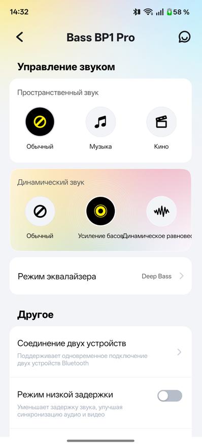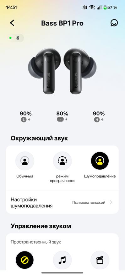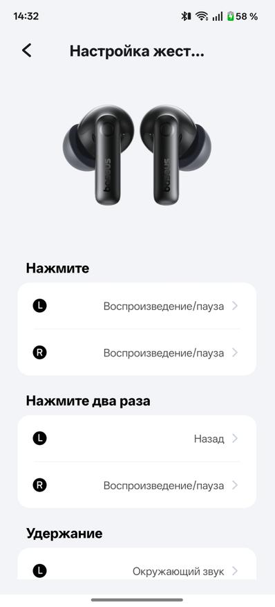 Настоящим центром управления звуком становится фирменное приложение Baseus. Оно предлагает обширный инструментарий для тонкой настройки: