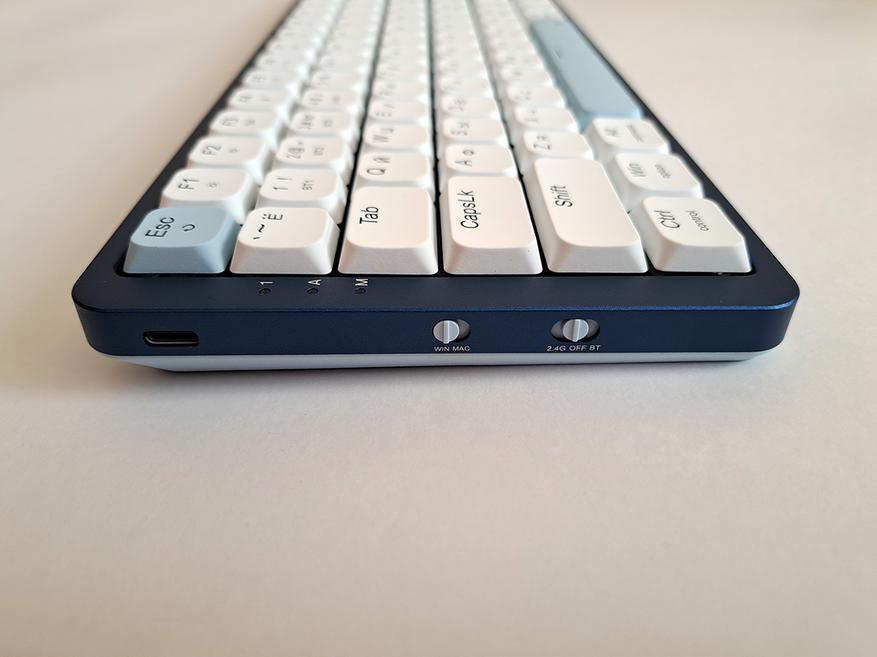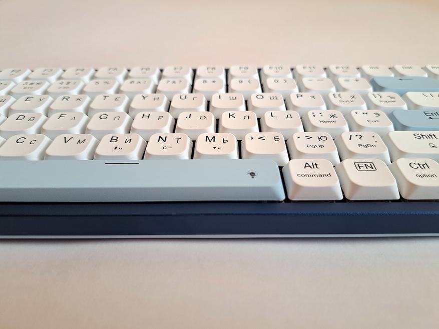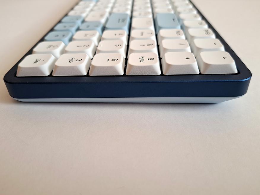 Верхняя крышка корпуса из анодированного алюминиевого сплава. В самой тонкой части высота клавиатуры вместе с клавишами меньше 2 см.