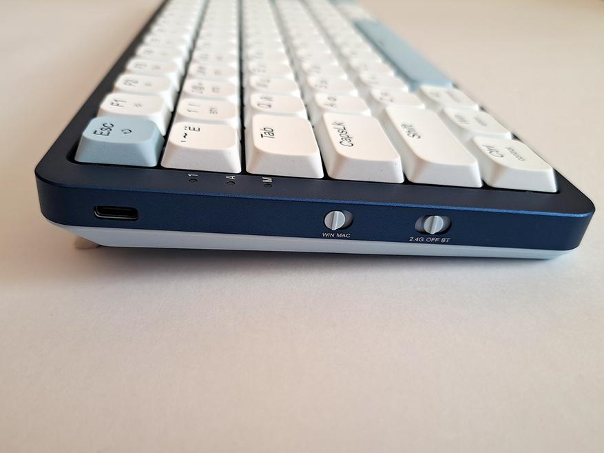 На левом торце расположены USB разъем, переключатель Win-Mac, и трёхпозиционный переключатель видов подключения. На правом торце ничего нет.