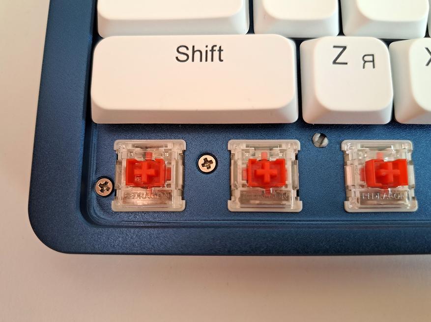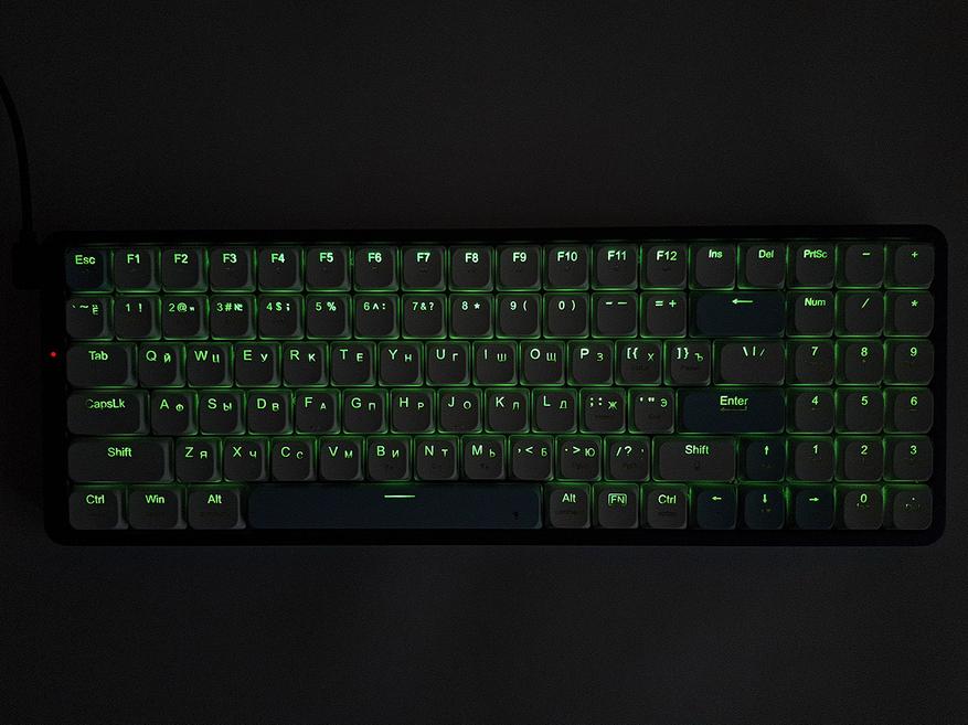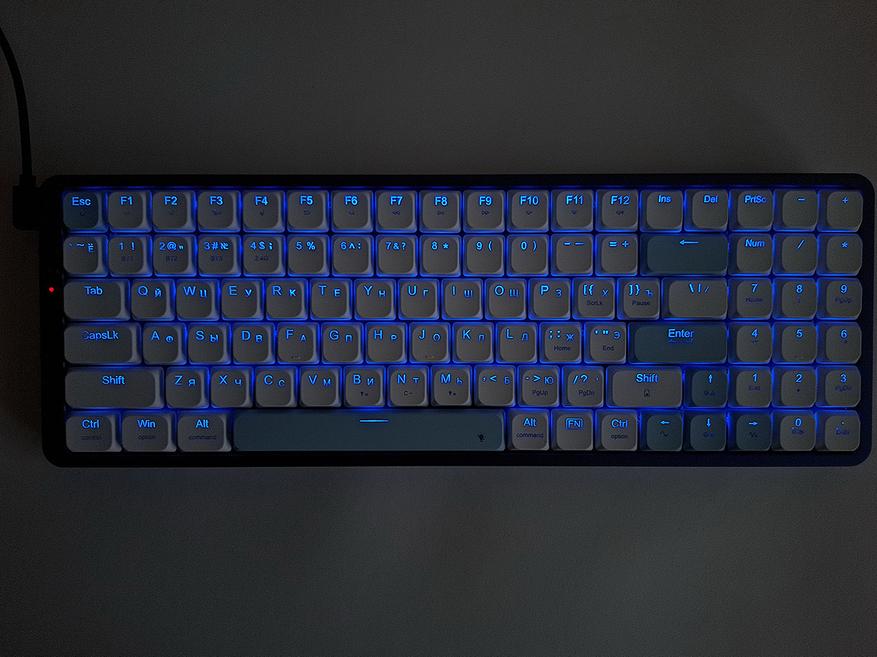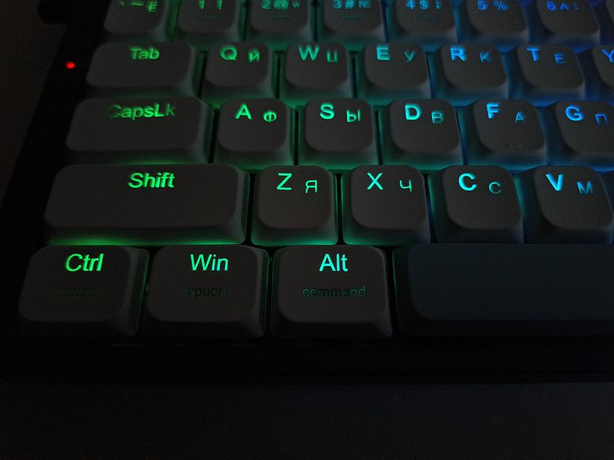 Клавиатура довольно шумная, иногда у клавиш присутствует металлический дребезг. Красные свитчи считаются игровыми, я не знаю, зачем их поставили в такую изящную модель. Тут бы больше бесшумная разновидность подошла. Я на ежедневной основе пользуюсь бесшумной Redragon Whisper. Знаю, о чем говорю.
