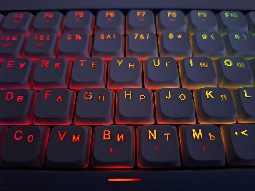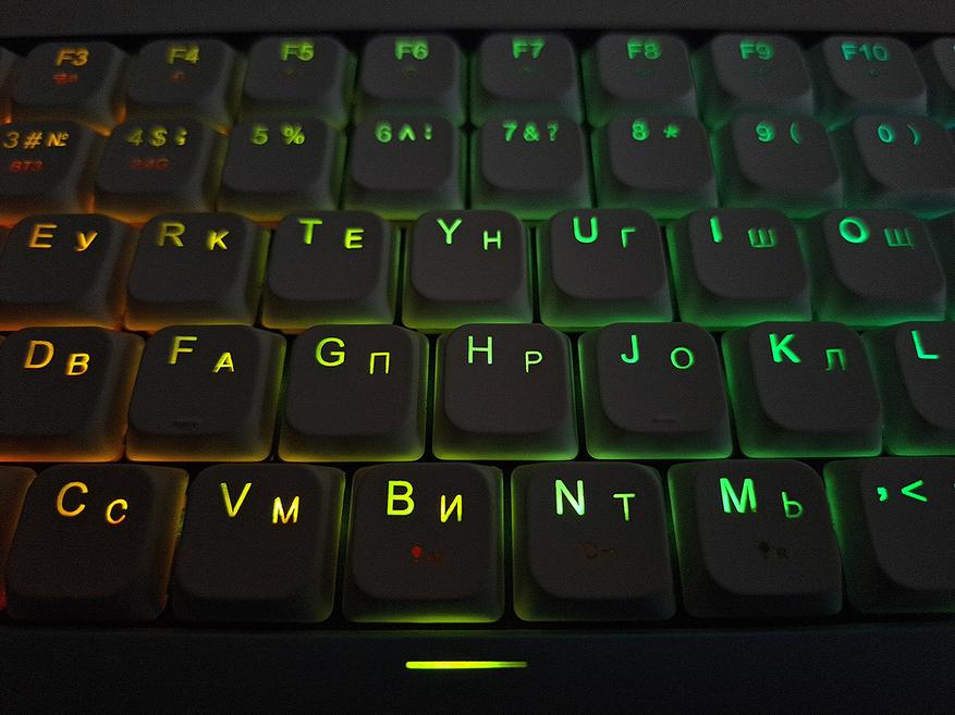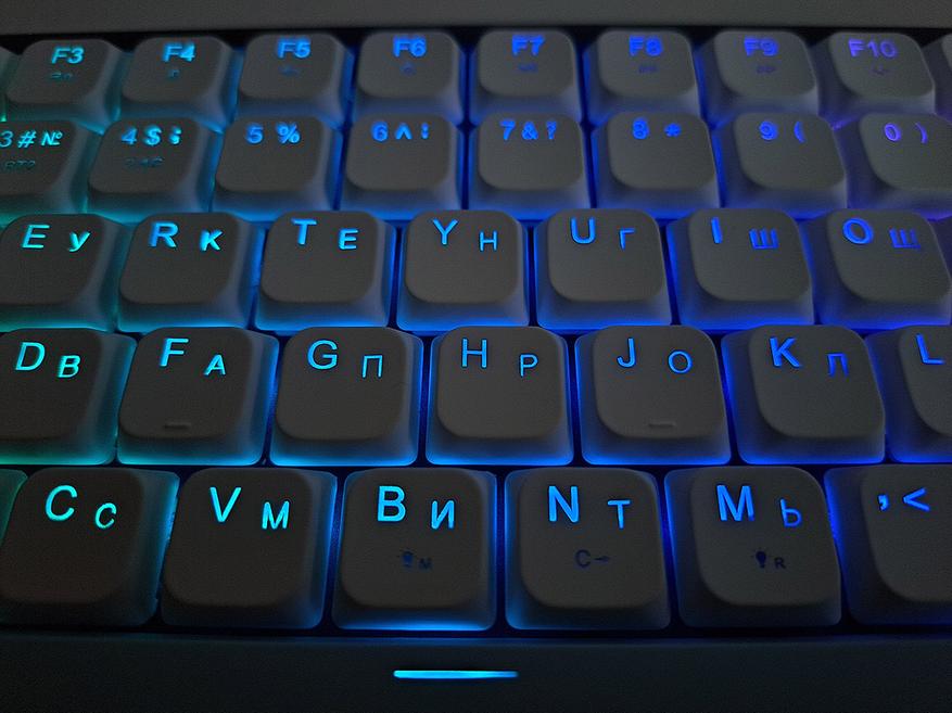 У данной модели имеется полноценная подсветка символов. А то, в последнее время вошла в моду подсветка только ореолов клавиш, что я совершенно не понимаю.