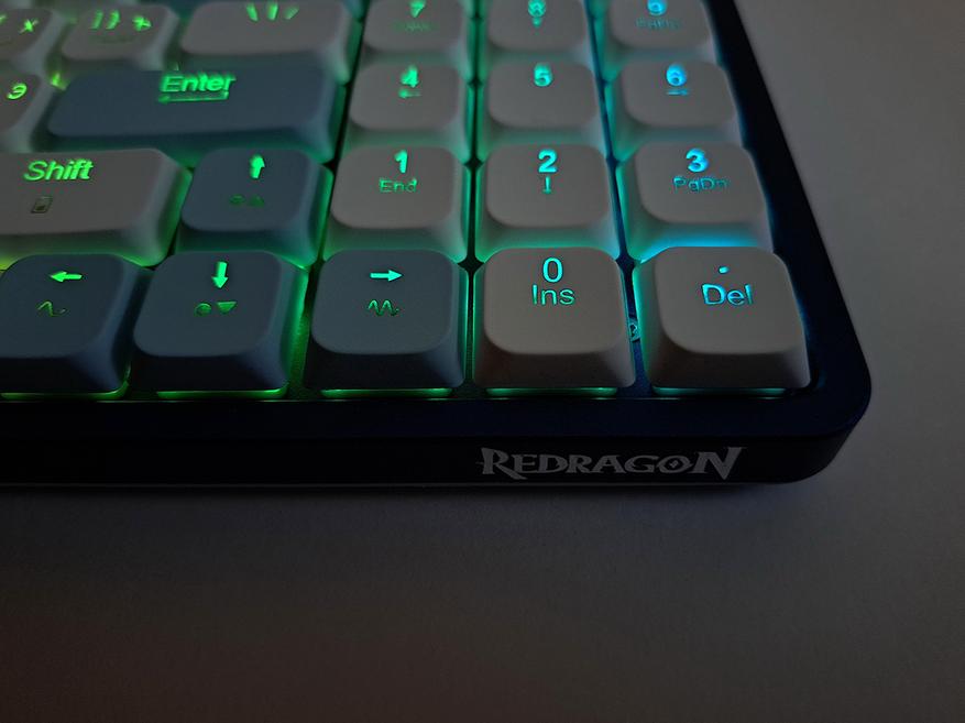 Компактная низкопрофильная клавиатура на основе 96 клавиш. Трёхрежимная, работает по проводу и через 2.4 ГГц или Bluetooth. Корпус с крышкой из алюминиевого сплава. Переключатели Redragon+RED. Регулируемая RGB подсветка. Фирменное ПО.