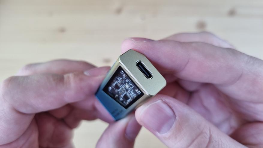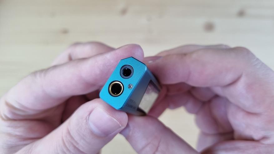 По входам здесь только Type C, а выхода два: на 3.5 мм и 4.4 мм джек. Управлять же устройством предполагается посредством двух многофункциональных кнопок на торце. Кроме своей внутренней громкости, с них вы можете переключить версию UAC, изменить уровень усиления, а также выбрать один из встроенных в ЦАП цифровых фильтров. Но это всё как и в прошлой ревизии.