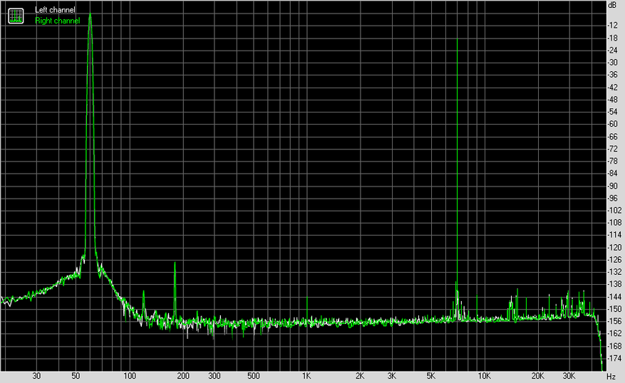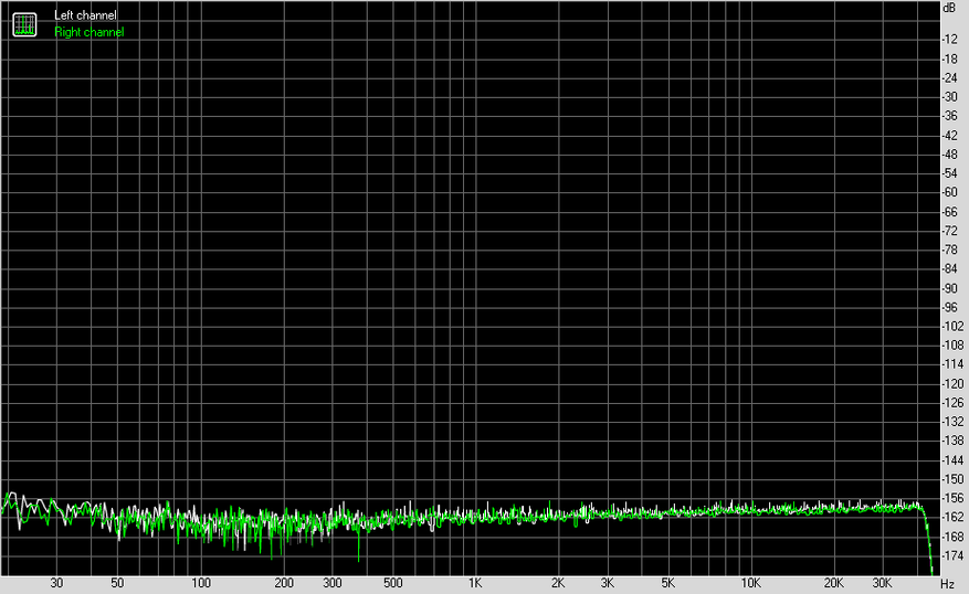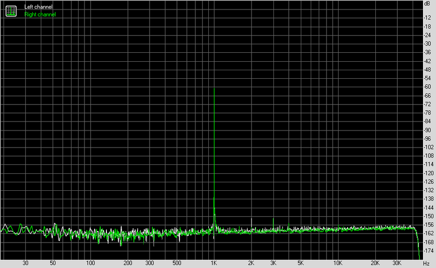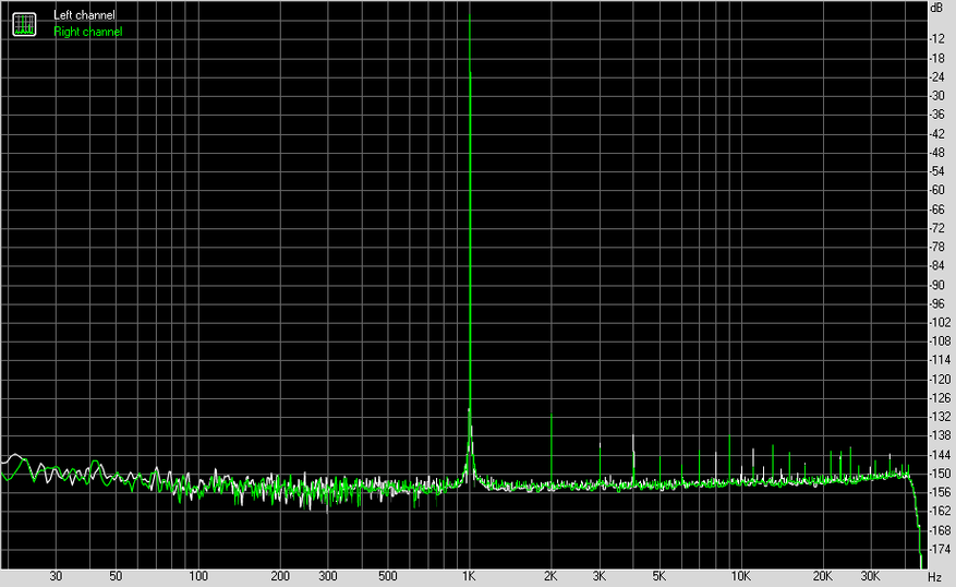 Измерения я проводил в 24 бита 96 кГц с каждого из выходов на АЦП E1DA Cosmos. В результате получил просто гениальные результаты с балансного выхода и чуть попроще — с обычного на 3.5 мм.