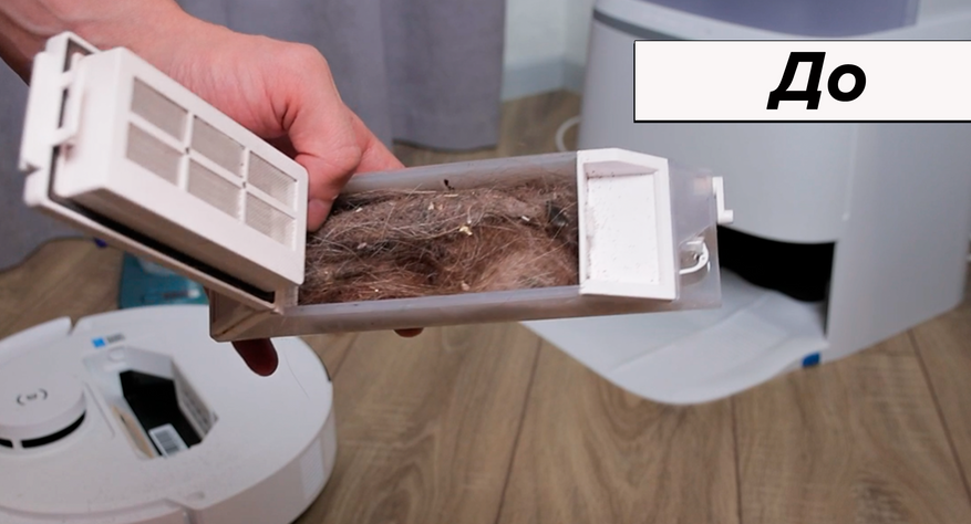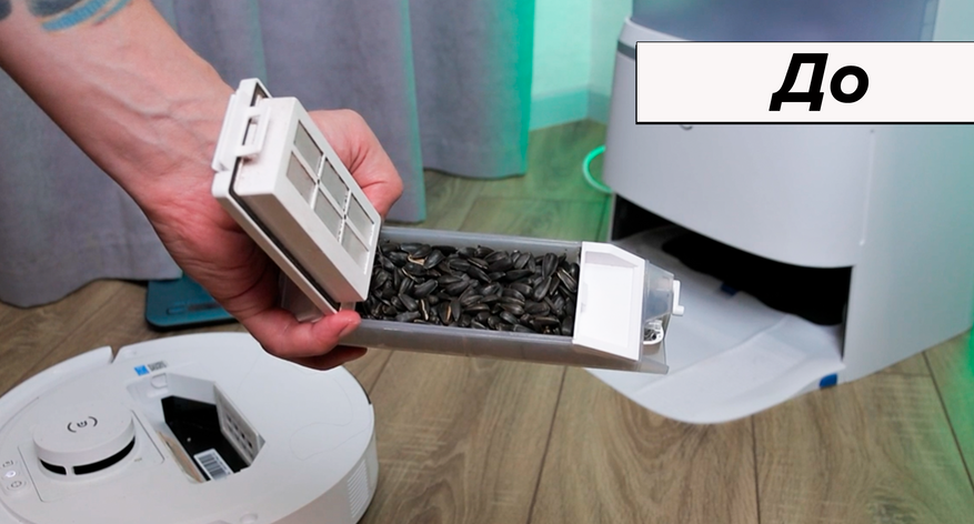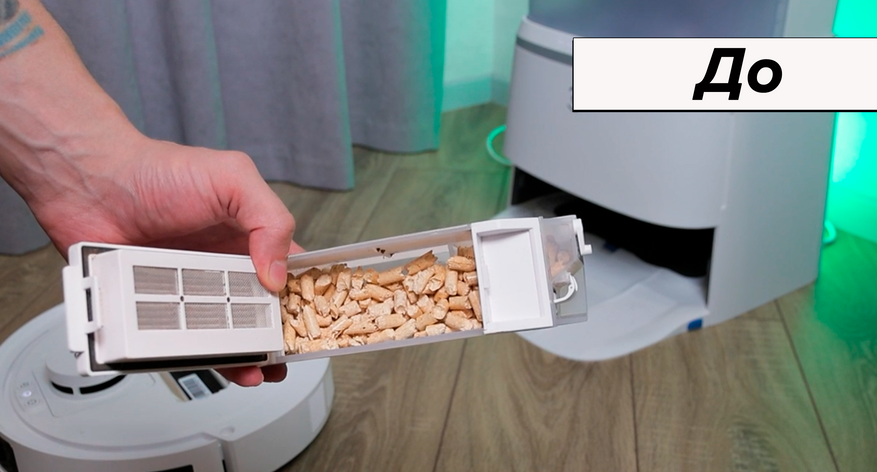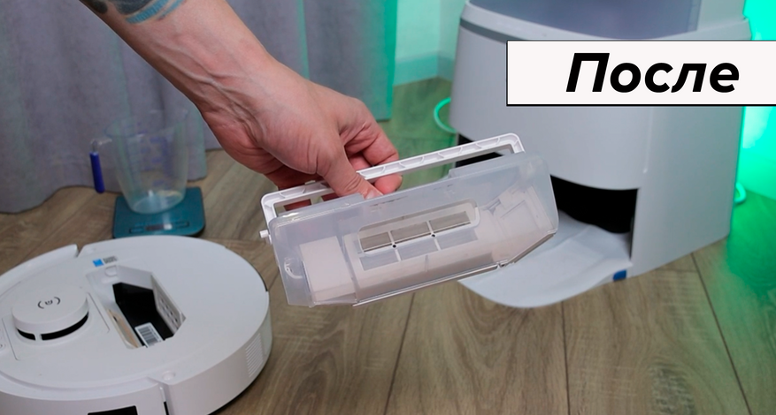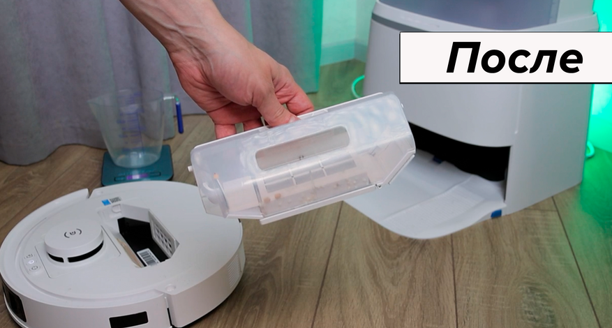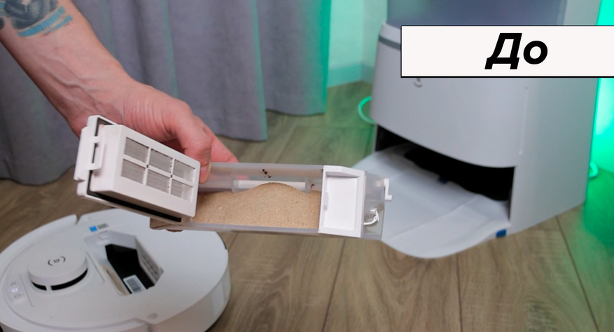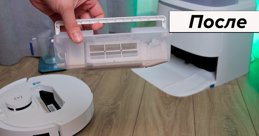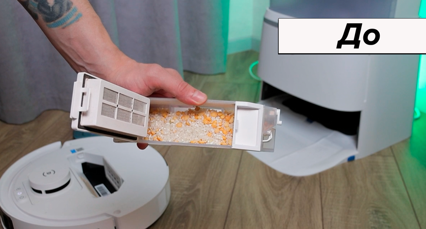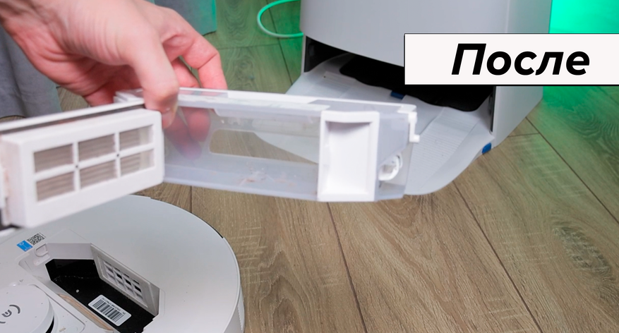 В системе самоочистки контейнера нет каких-либо инноваций, но эффективность у неё 100%. Я наполнял пылесборник разными типами загрязнителей, включая семечки, крупу и наполнитель — результат всегда безупречный. Никаких дополнительных манипуляций проводить не требуется.