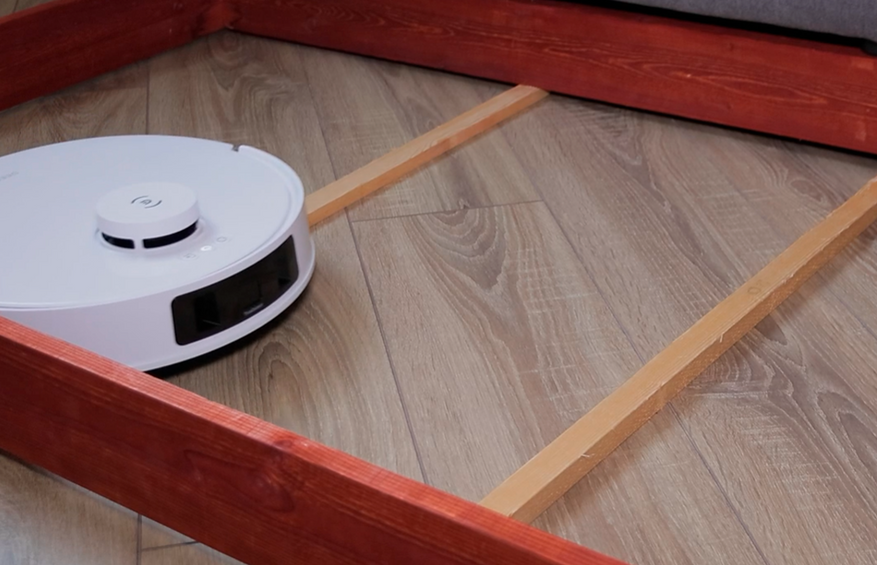 У пылесоса полный набор датчиков для аккуратного перемещения по квартире. Лидар сканирует препятствия высотой от 10 см, боковой TOF-сенсор помогает ехать вдоль стены, фронтальный датчик заблаговременно отслеживает ножки мебели, чтобы робот успел сбросить скорость перед столкновением. Датчики поверхности адекватно реагируют на темные поверхности, но не пускают пылесос на ступеньки. Пороги преодолевает нормально, в том числе 20 мм. Но для беспрепятственного перемещения по дому больше подойдут порожки высотой 18 мм.