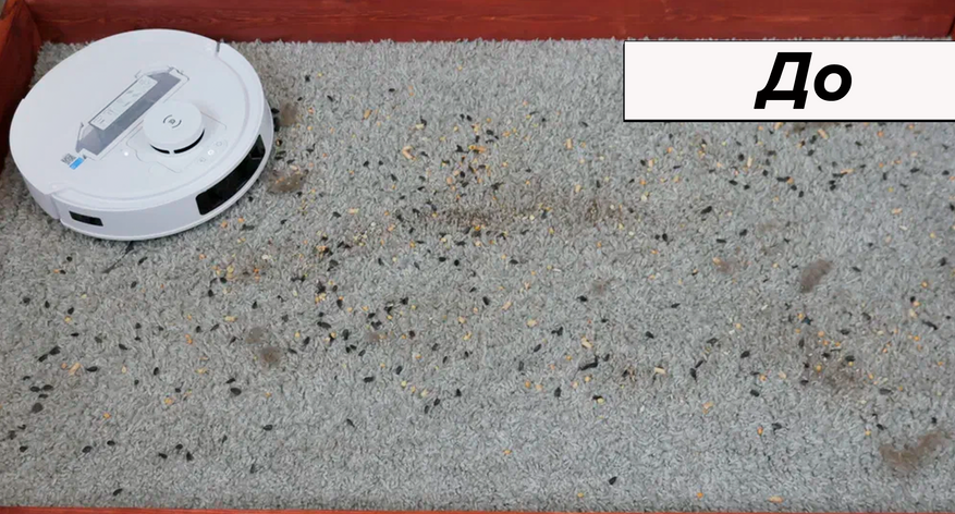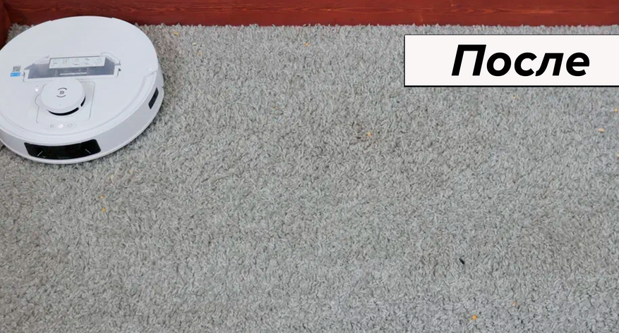 Для высококачественной уборки ковров роботу банально не хватило мощности, результаты средние. Хотя качество уборки шерсти очень высокое — на ковре не остаётся ни волоска, при это сама щётка остаётся чистой благодаря фирменной системе самоочистки.