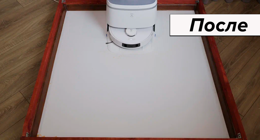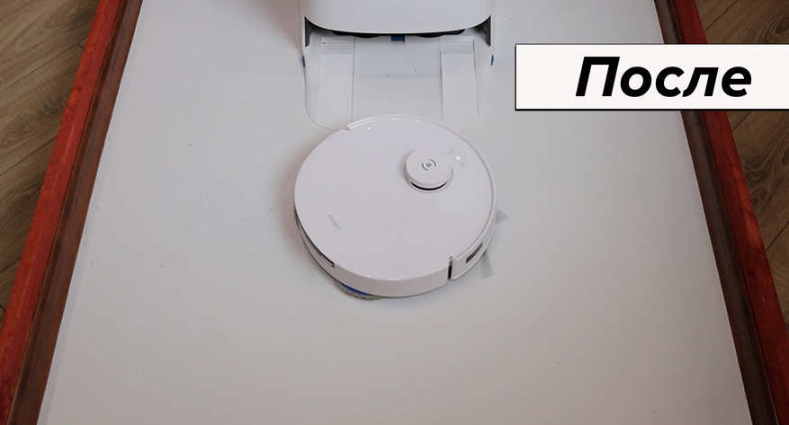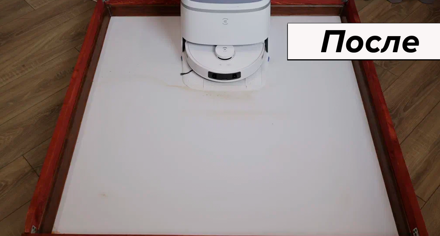 Салфетки Ecovacs Deebot впитывают грязь не очень хорошо и оставляют на полу грязевой налёт. Чтобы его оттереть, запускать пылесос пришлось 4 раза. Результат чуть хуже среднего.