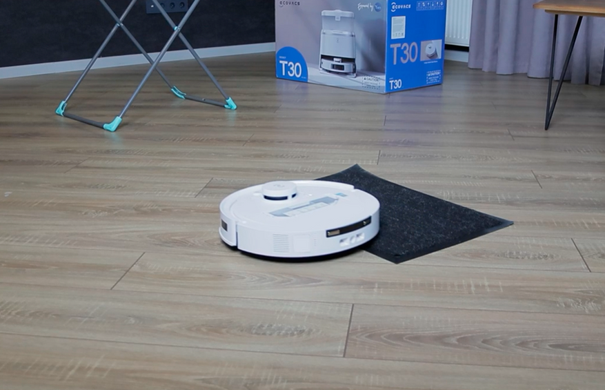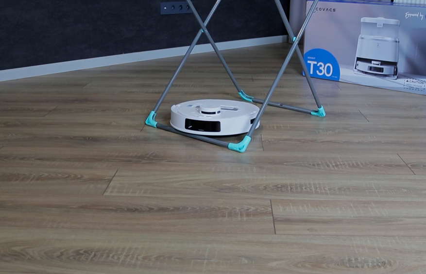 Из минусов — ножки сушилки, которые Deebot T30 Pro Omni пытается переехать (и в конечном счете это получается сделать).