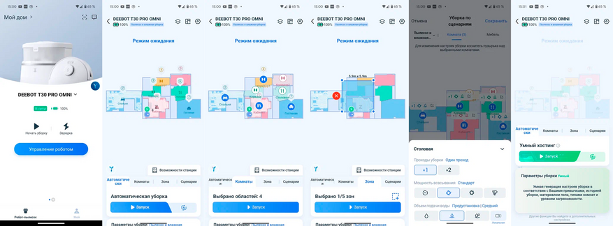 Особого внимания достойны умные функции. К примеру, пылесос может сам определять периодичность заезда на станцию или оптимальные параметры уборки в вашем доме.