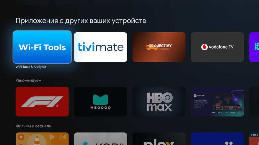 Магазин есть и содержит адаптированные под систему Google TV (Android TV) приложения: официальные сервисы и кинотеатры, различные утилиты. Все чего нет в официальном магазине, например, альтернативные приложения для бесплатного просмотра или модифицированные программы вы можете закинуть через WiFi сеть, предварительно скачав их на свой ПК. На приставке устанавливаете CX-проводник (есть в официальном магазине), в нем открываете вкладку «сеть» и следуете инструкциям на экране. Если компьютера или ноутбука дома нет, то можно использовать смартфон и приложение для передачи файлов по WiFi, например, TV File Transfer.