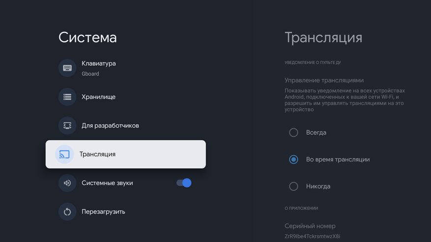 - Отдельно стоит отметить встроенный Google Cast, который вшит в стик. Он позволяет транслировать видео или музыку со своего смартфона или ПК, а также посмотреть фото и изображения на большом экране. Можно транслировать отдельную вкладку с браузера или даже весь экран. В общем технология позволяет передать контент на большой экран просто через WiFi, без подключения кабелем.