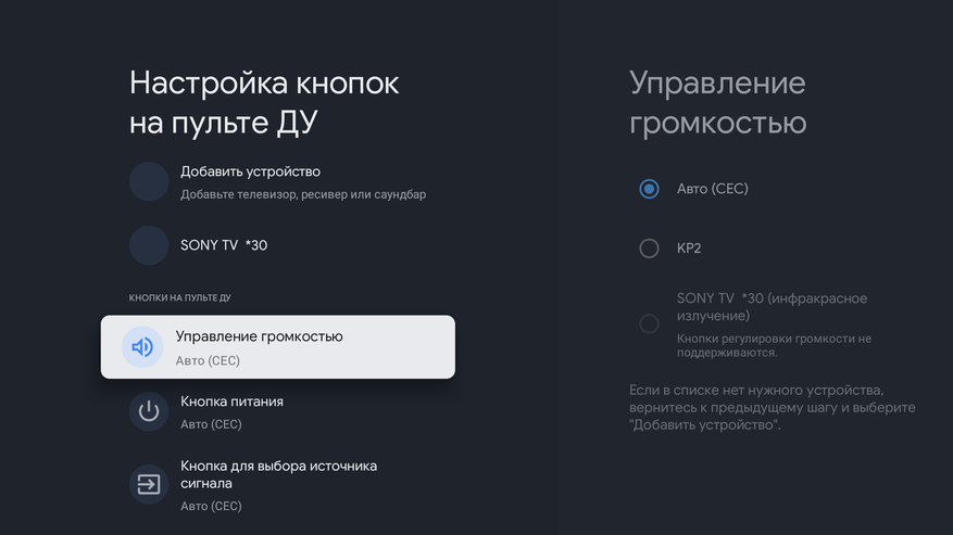 - Также хочу отметить возможность настройки пульта для управления через ИК-передатчик. Это удобно, если телевизор не поддерживает CEC, а вам нужно управлять и другими устройствами.