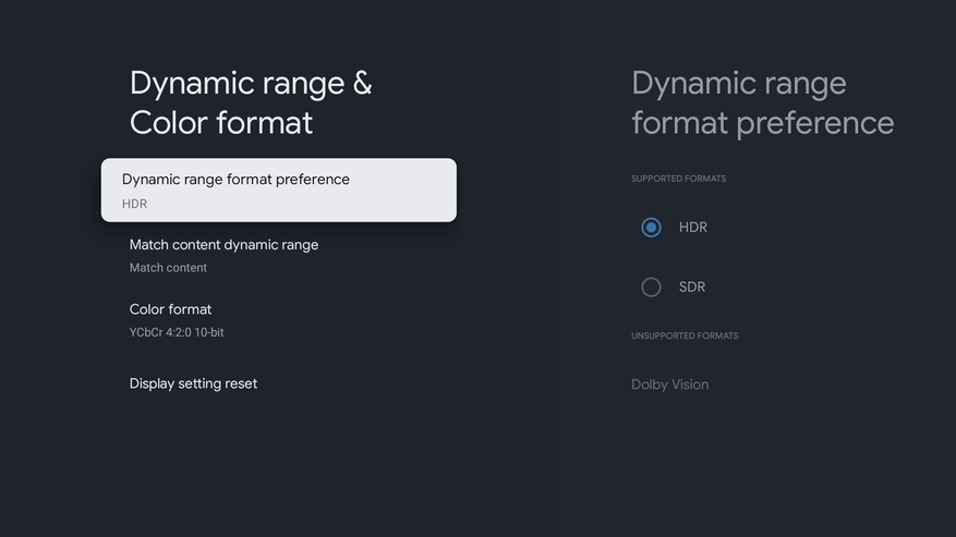 Поддерживается HDR10, HDR10+ и HLG, как в постоянном, так и в адаптивном режиме (автоматически переключается при воспроизведении соответствующего контента).