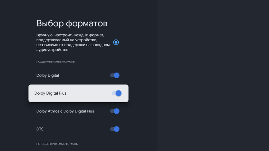 - По звуку имеем поддержку форматов DTS, Dolby Digital, Dolby Digital Plus и Dolby Atmos.