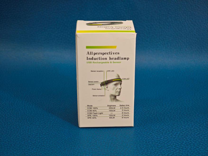 Это простой и недорогой фонарь-налобник с COB полоской в один ряд. Перезаряжаемая литиевая батарея обеспечивает работу в течение нескольких часов, а подзарядить фонарь можно от обычного USB-C кабеля. Дополнительный боковой фонарь представляет собой XPE светодиод с простым рассеивателем.