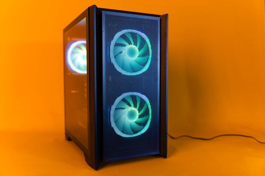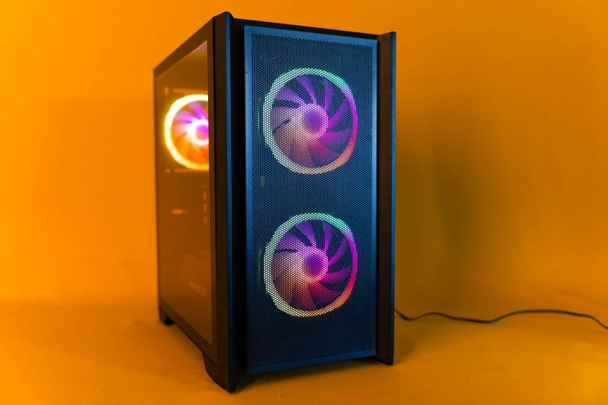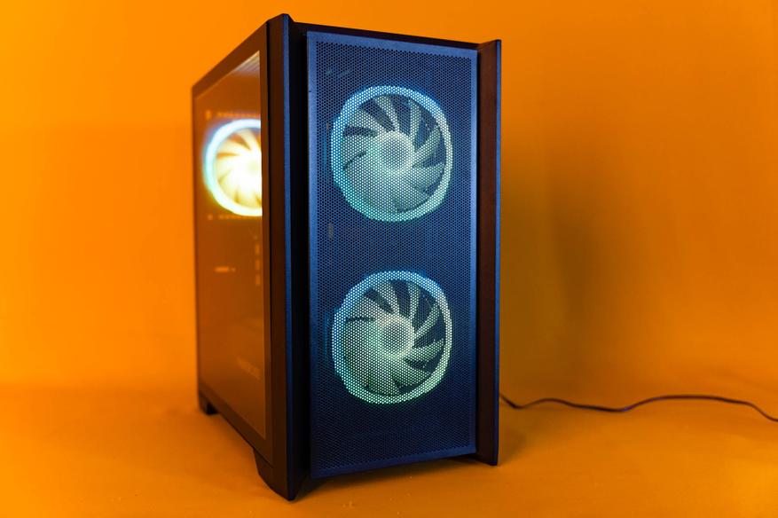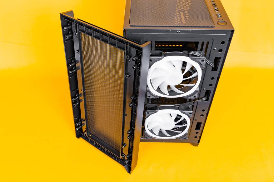 Два 120-миллиметровых вентилятора, установленные на передней части рамы корпуса Alisio Micro Z3B ARGB, скрыты за лицевой панелью.