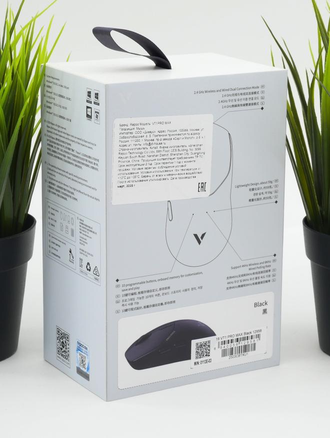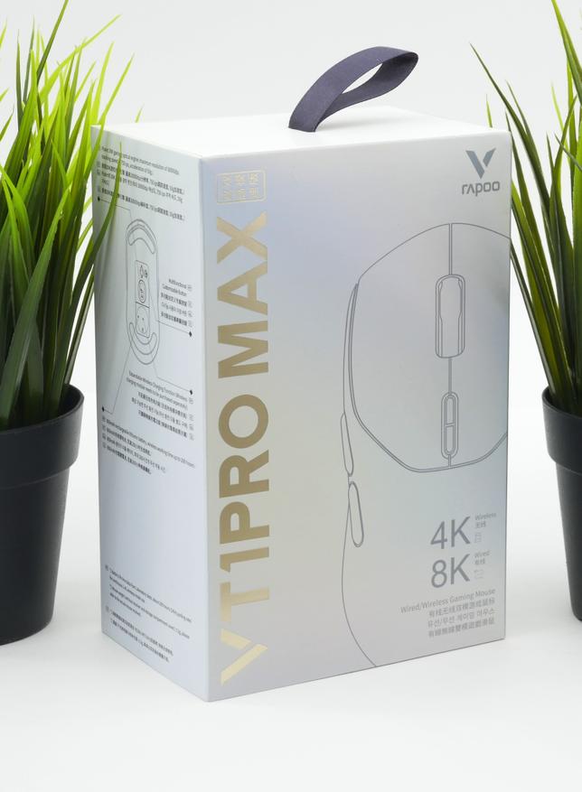 Rapoo VT1Pro Max — это легкая игровая мышь с оптическим сенсором PAW3950 с разрешением до 30000 DPI (и разгоном до 42000 DPI), частотой опроса до 8000 Гц и беспроводным подключением.