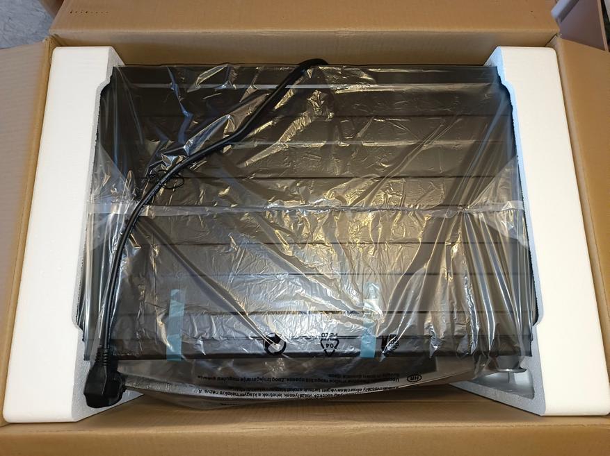 Мини-печка упакована в фирменную упаковку компании Harper. Внутри упаковки присутствуют вставки из пенопласта для защиты мини-печки от повреждений. Комплектация простенькая: