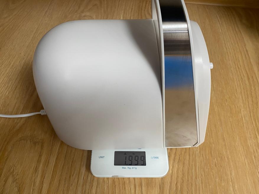 Кабель питания имеет длину 1 метр. Весит мясорубка 1.9 кг.