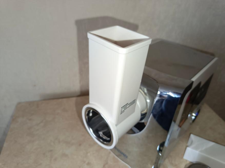 Насадка-терка изготовлена из белого матового пластика, и он моментально окрашивается в красно-оранжевый цвет от приготовления моркови или свеклы. В целом это не так страшно, так как от этих продуктов окрашивается большинство кухонной утвари.