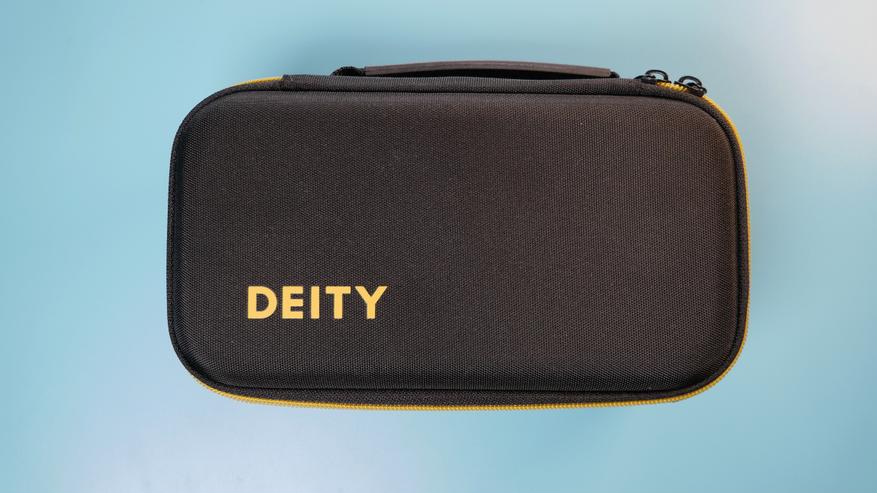 Для транспортировки микрофона Deity V-Mic D3 Pro используется сумка. У нее есть удобная прорезиненная ручка, а молния застегивается при помощи двух замков. Сама по себе сумка имеет жесткую конструкцию и можно не бояться, что в багаже прижмут микрофон и он сломается.