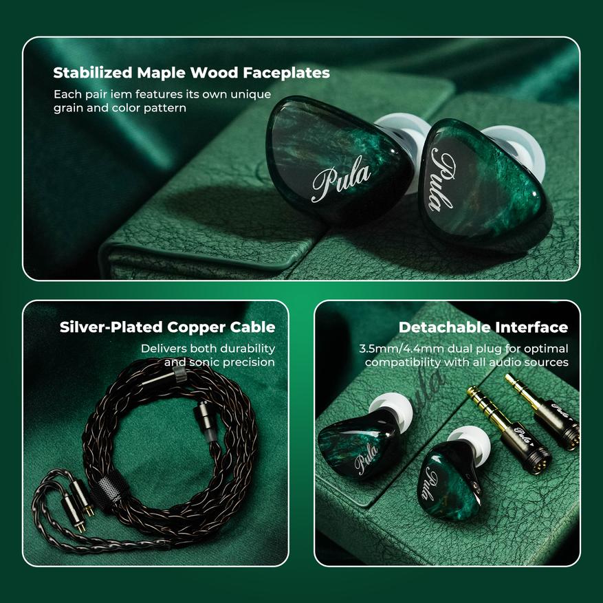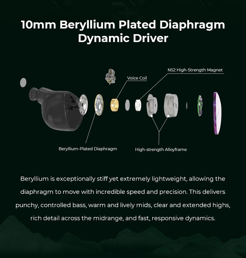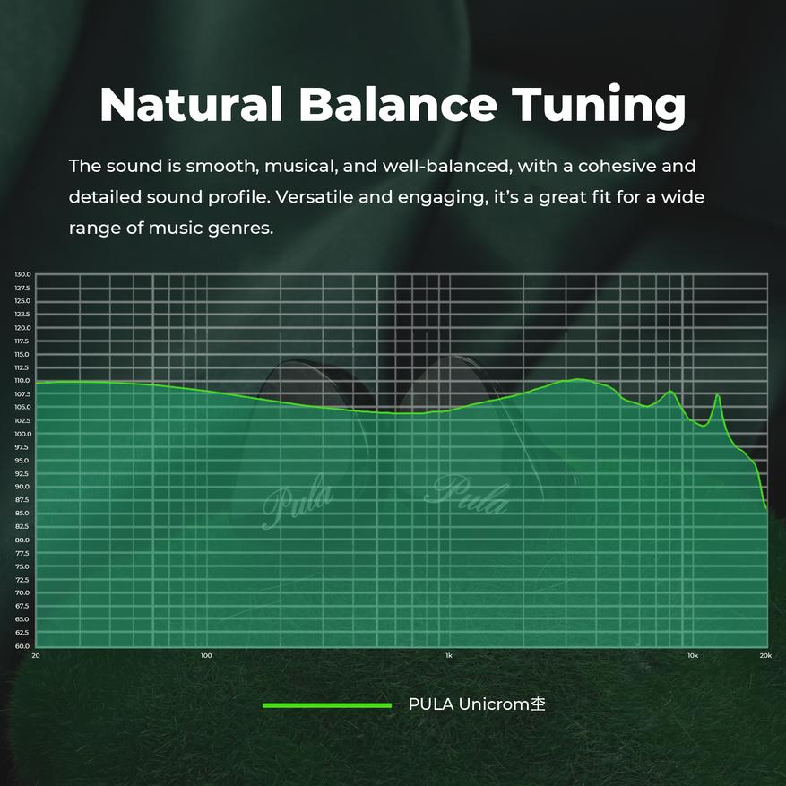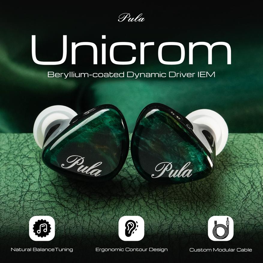 Наушники Pula Audio Unicrom оснащены одним 10 милиметровым драйвером (на канал) с берилиевым покрытием диафрагмы.