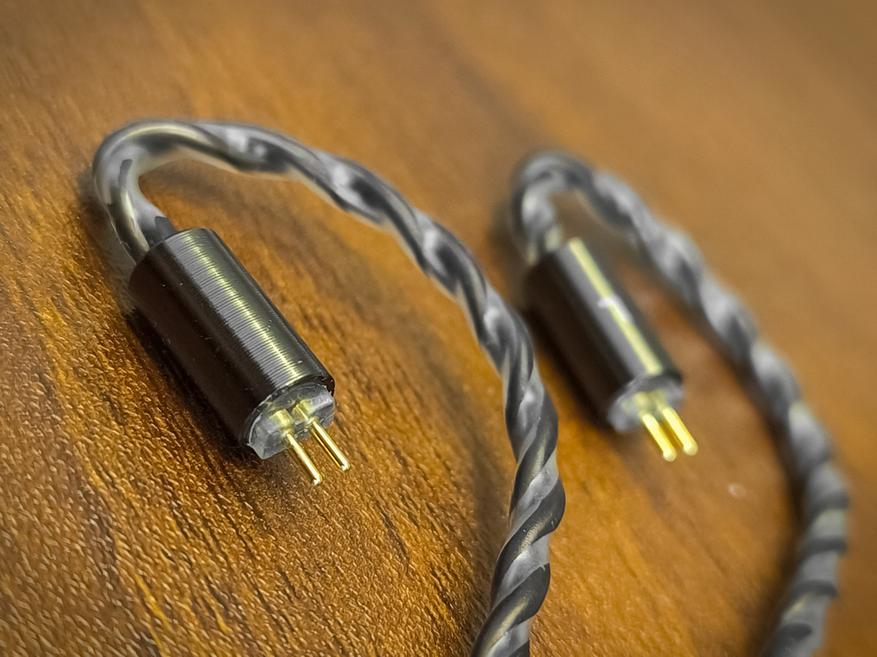 Для подключения кабеля к наушникам используются стандартные двухпиновые коннекторы 0.78 mm. Возле коннекторов имеются интегрированные заушины из термоусадочной трубки.