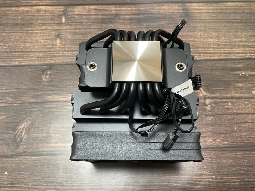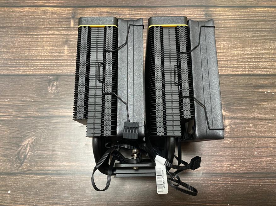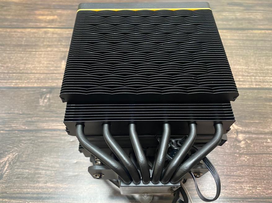 Конструкция кулера полностью симметрична и с двух сторон имеется небольшой выступ, для предотвращения конфликта с оперативной памятью и радиаторами охлаждения зоны VRM. Так как радиатор симметричный, то и установить его можно любой стороной. Пластины радиатора имеют волнообразный профиль, для плавного прохождения воздушного потока. Радиатор состоит из 50 пластин. Для охлаждения радиатора используются 2 вентилятора на 120 мм, но при необходимости можно установить и 3-й вентилятор, но пользователю необходимо будет докупить дополнительные металлические скобы, так как в комплекте их просто нет. Для установки радиатора используются подпружиненные винты с двух сторон пластины.