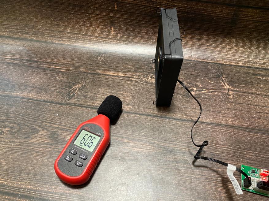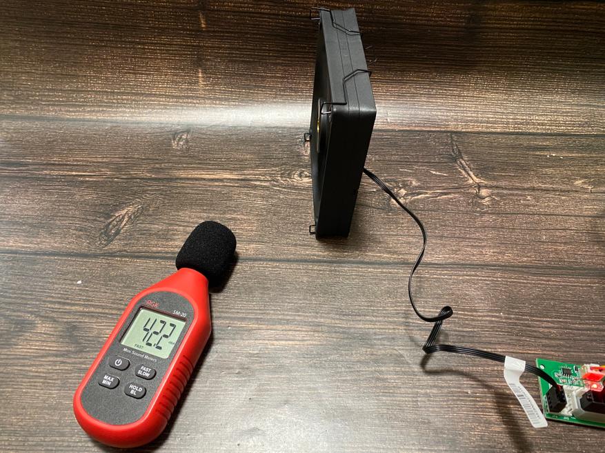 На минимальных оборотах вентилятора, мы получаем уровень шума 42 dB, а при максимальных оборотах уровень шума увеличивается до 60 dB.