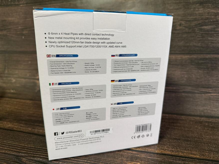 Система воздушного охлаждения процессора PCCooler Paladin EX400S упакована в картонную коробку белого цвета, на которой мы можем увидеть таблицу с основными техническими характеристиками, а также рассеиваемую мощность 180 Вт, ну и конечно, цветное изображение самого кулера и название модели. За сохранность кулера внутри коробки отвечают несколько вставок из вспененного материала. Внутри коробки пользователь найдет: радиатор, вентилятор 120 мм, скобы для крепления вентилятора, шприц с термопастой, руководство по установке, пластиковый бэкплейт, монтажные планки, пластиковые втулки, винты крепления.