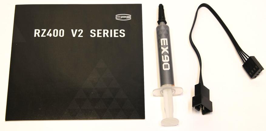 С противоположной стороны находится таблица со спецификацией устройства. Она достаточно подробная и характеристики представлены в полном объёме. Нет лишь информации о производительности этой системы охлаждения, но при покупке я видел информацию о 230 Вт. Это неплохой результат, который остаётся лишь проверить.