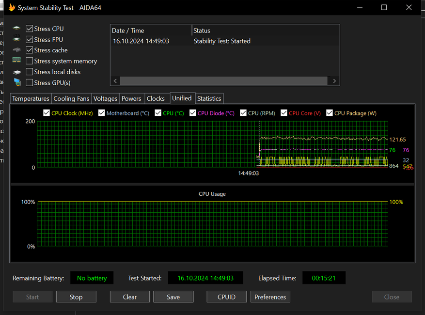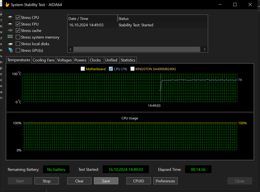 Тестирование происходило с помощью программы AIDA64 Extreme, результаты теста на скриншотах ниже.