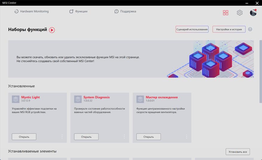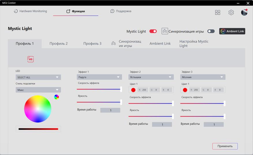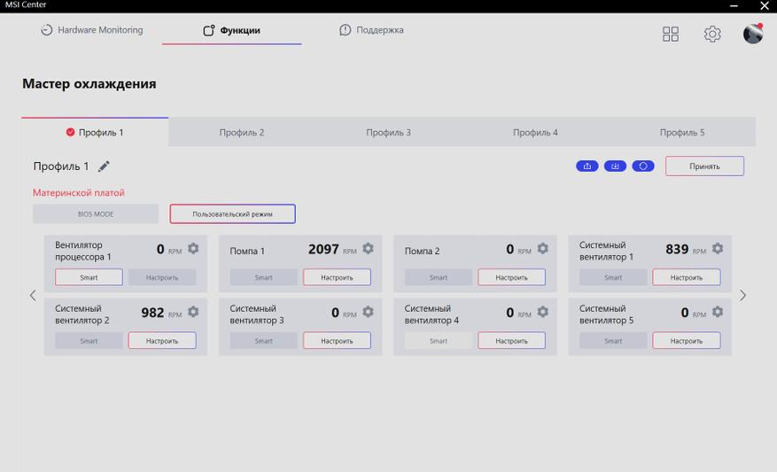 Для ручной настройки MAG CoreLiquid I360, необходимо установить программу MSI Center, которую можно скачать с официального сайта компании MSI. В данной программе есть различные утилиты, которые позволят настроить подсветку каждого вентилятора и помпы, регулируя их независимо, а также мониторить и регулировать обороты вентиляторов.