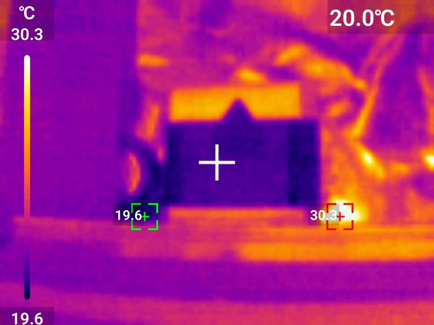 Разрешение 120x90 пикселей даёт вполне читаемую картинку — достаточно для определения областей перегрева и холодных зон, хотя детализация уступает моделям с матрицей 256x192.