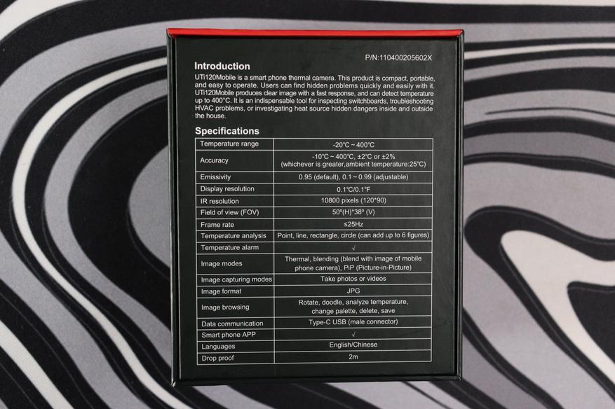 Внутри коробки находится сам тепловизор, USB-кабель Type-C длиной около метра, переходник под micro-usb, краткая инструкция на английском и китайском языках, а также гарантийный талон. Упаковка продумана — каждый элемент имеет своё место, что исключает повреждение при транспортировке.