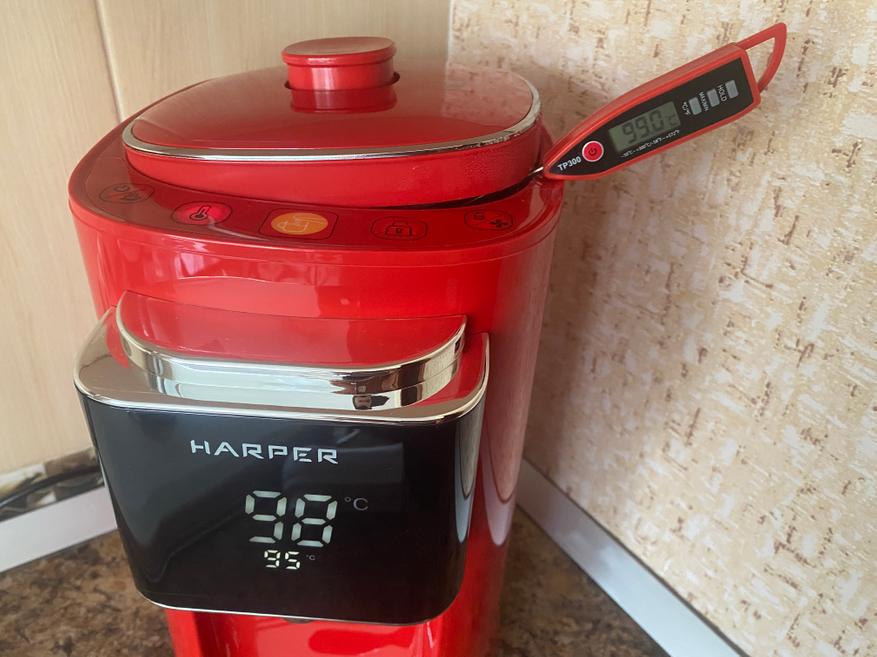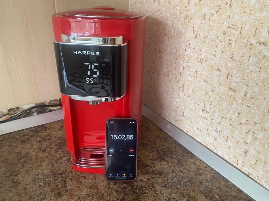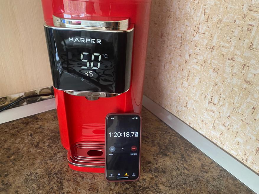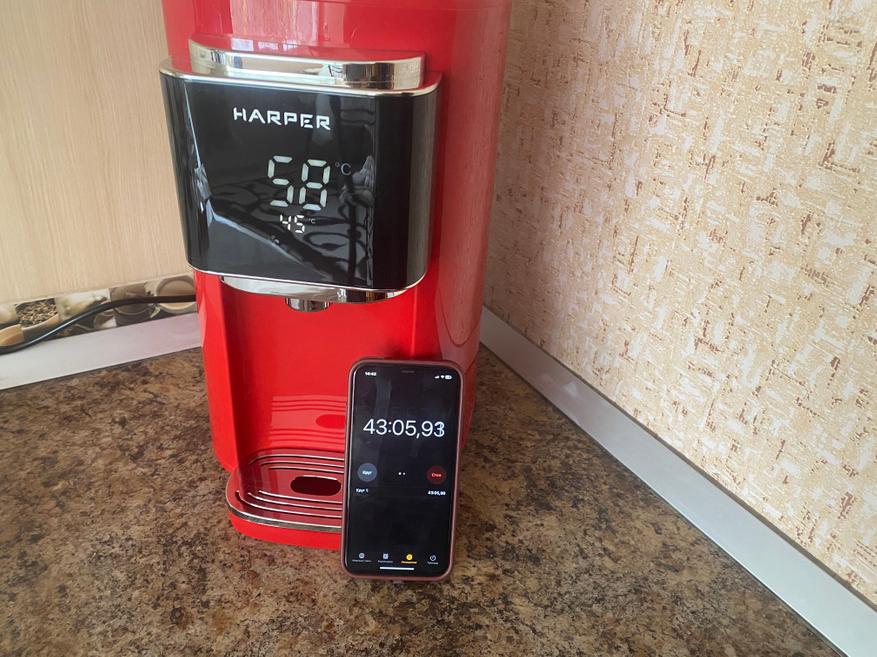 За время эксплуатации термопота Harper HTP-5T01, могу сказать, что он показал себя с наилучшей стороны. Нагрев полного объема воды занимает всего 22 минуты, а при активизации режима подогрева, заданная температура будет всегда поддерживаться необходимое время. Если говорить об принудительном охлаждении, то могу сказать, что охлаждение действительно происходит, но не так быстро как хотелось бы. С другой стороны электрочайники и термопоты разработаны для кипячения воды, а не для её охлаждения и пользоваться данным режимом необязательно. К плюсам определенно можно отнести медленное остывания воды внутри термопота, быстрый нагрев полного объема воды и информативный и большой дисплей, благодаря которому можно визуально контролировать выставленный режим работы и температуру воды в реальном времени. К минусам, лично я, могу отнести отсутствие возможности контролировать уровень воды внутри термопота без открытия крышки.