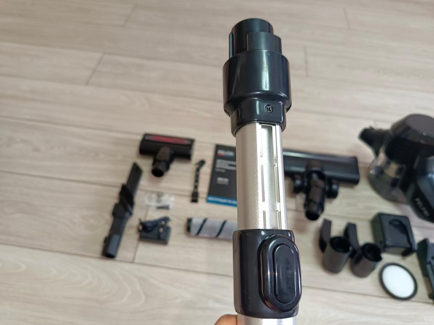 Неплохой вертикальный пылесос, который отлично подойдет для регулярной уборки в доме. За свою цену серьезных минусов я не обнаружил. Возможно, главный его недостаток — это время работы и продолжительность зарядки. Я провел несколько различных тестов и выяснил, что для легкой уборки без крупных частиц мусора вполне достаточно среднего уровня мощности. Однако для тщательной уборки необходимо использовать максимальную мощность, при которой пылесос работает всего 14 минут. Этого времени хватает, чтобы убрать две-три небольшие комнаты, либо использовать его как мини-пылесос на кухне для ежедневной поддержки чистоты.