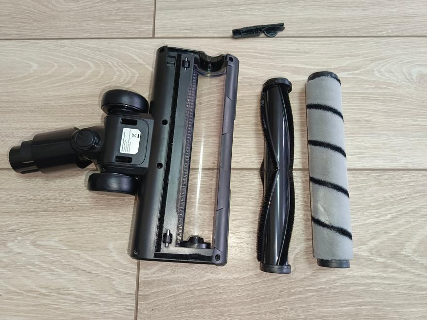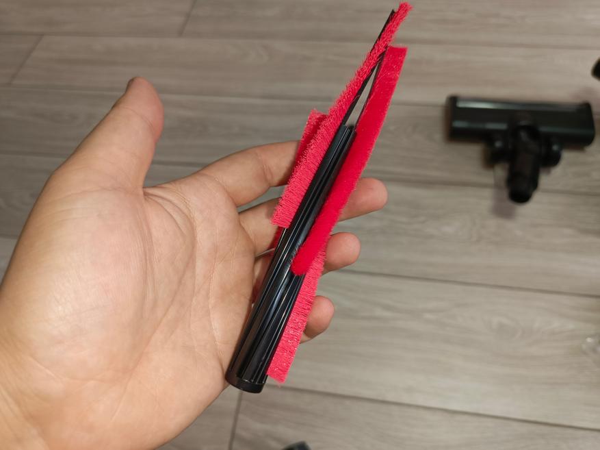 Конструкция разборная и проста в обслуживании: щетка разбирается по тому же принципу, что и основная насадка, но при необходимости можно дополнительно разобрать и саму щетку. Щетинистый вал легко извлекается вдоль направляющих, что упрощает его очистку от намотавшихся волос и грязи.