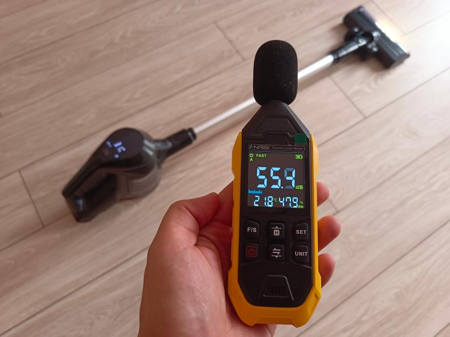 Несмотря на свою производительность, пылесос в целом остается весьма тихим. Уровень шума замерялся с расстояния одного метра.