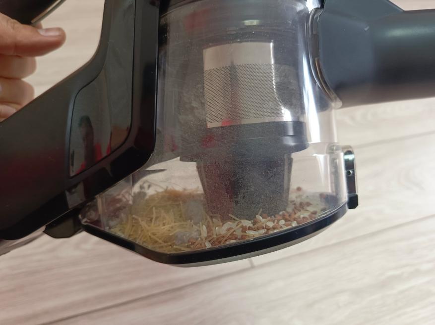 Для теста пылесоса я рассыпал мусор: вермишель, рис, сахар, гречку. Пылесос справился с этой задачей на все 100%.