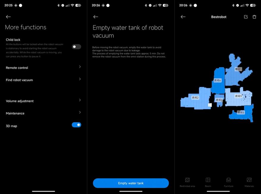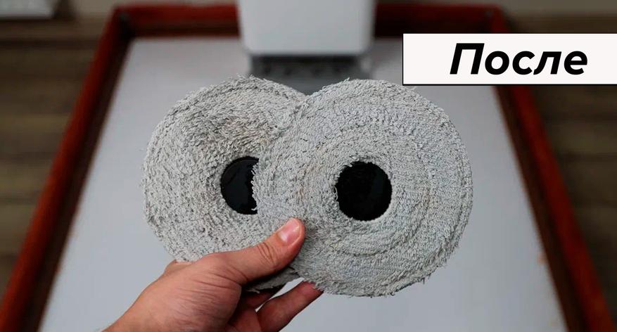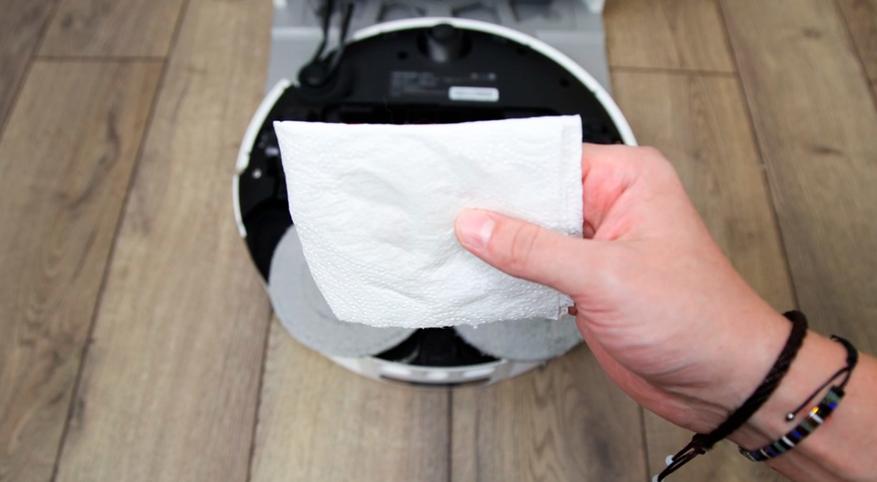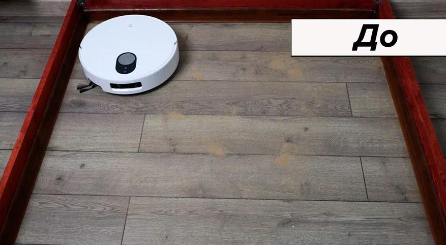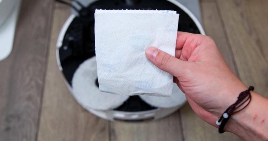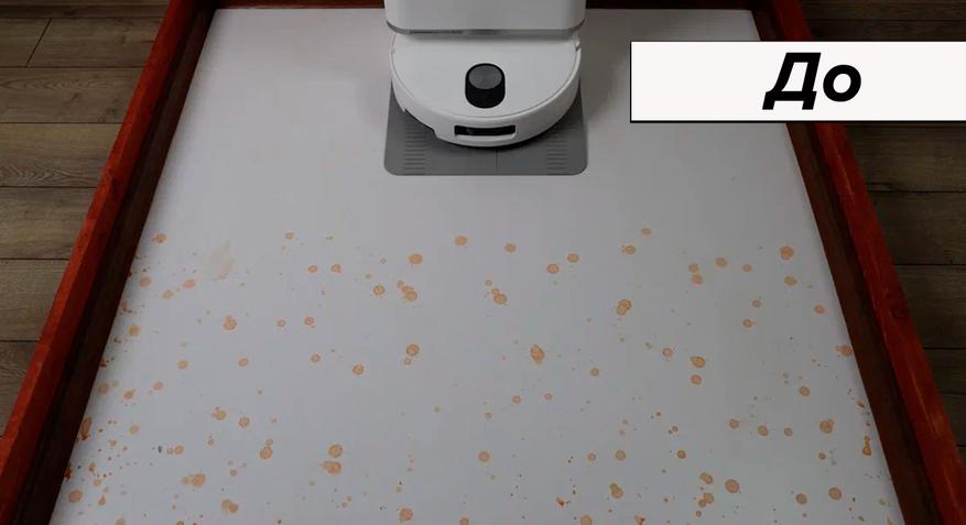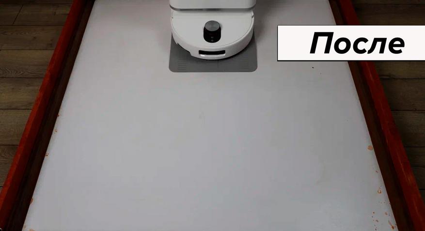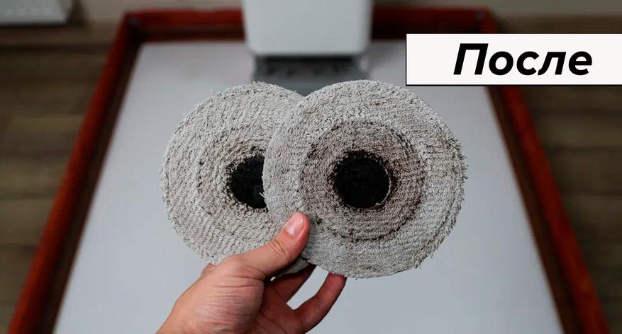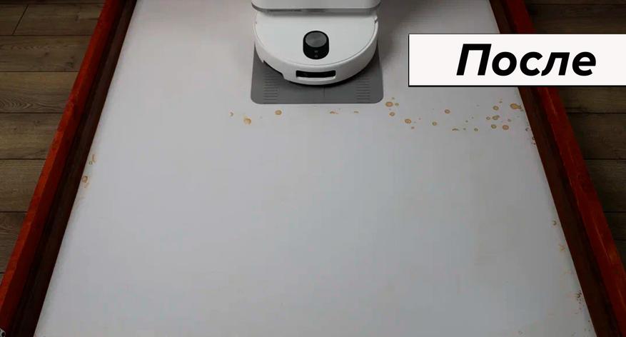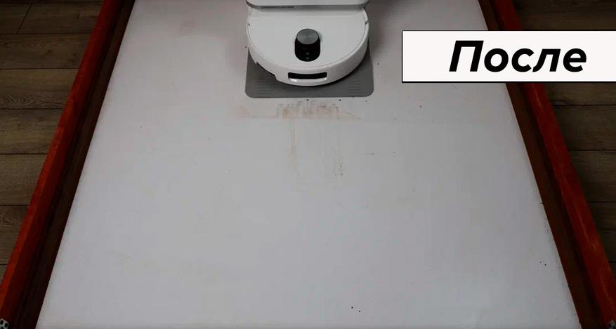 С протиркой полов ситуация примерно такая же, как и со сбором мусора — ни один запуск не прошёл без навигационного сбоя. Робот отлично оттирает пятна — но только там, где проезжает. А из-за того, что отдельные участки постоянно выпадают из его маршрута, приходится делать больше запусков, чем хотелось бы.