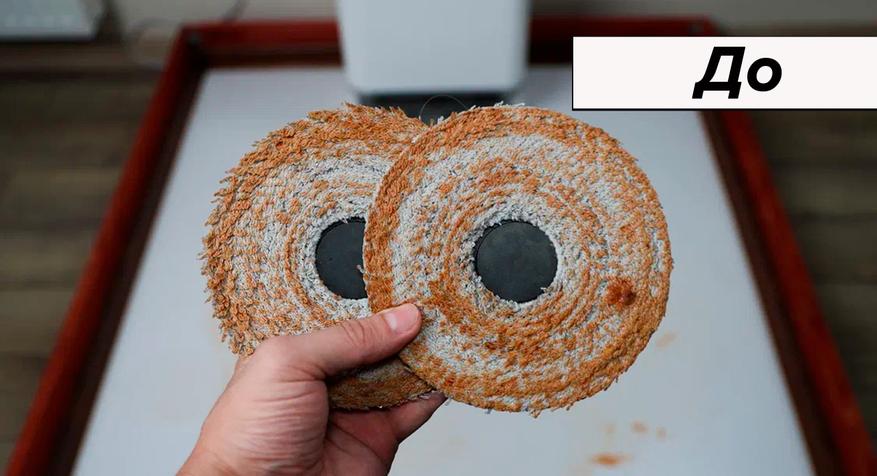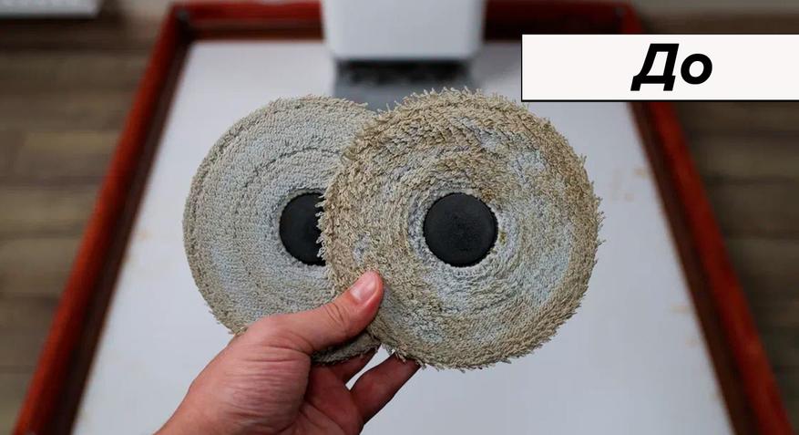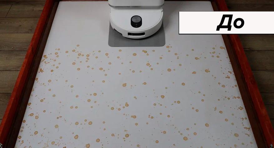 Кофейные и сочные пятна мелковорсовые мопики оттирают с 1-2 проходов. Грязь и кетчуп — с 4 проходов. Результат хороший, но мог быть ещё лучше, если бы M40s держал стабильную траекторию.